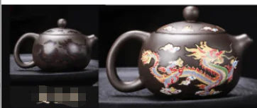 Vintage Purple Clay Teapot with Dragons and Phoenix (One Set)